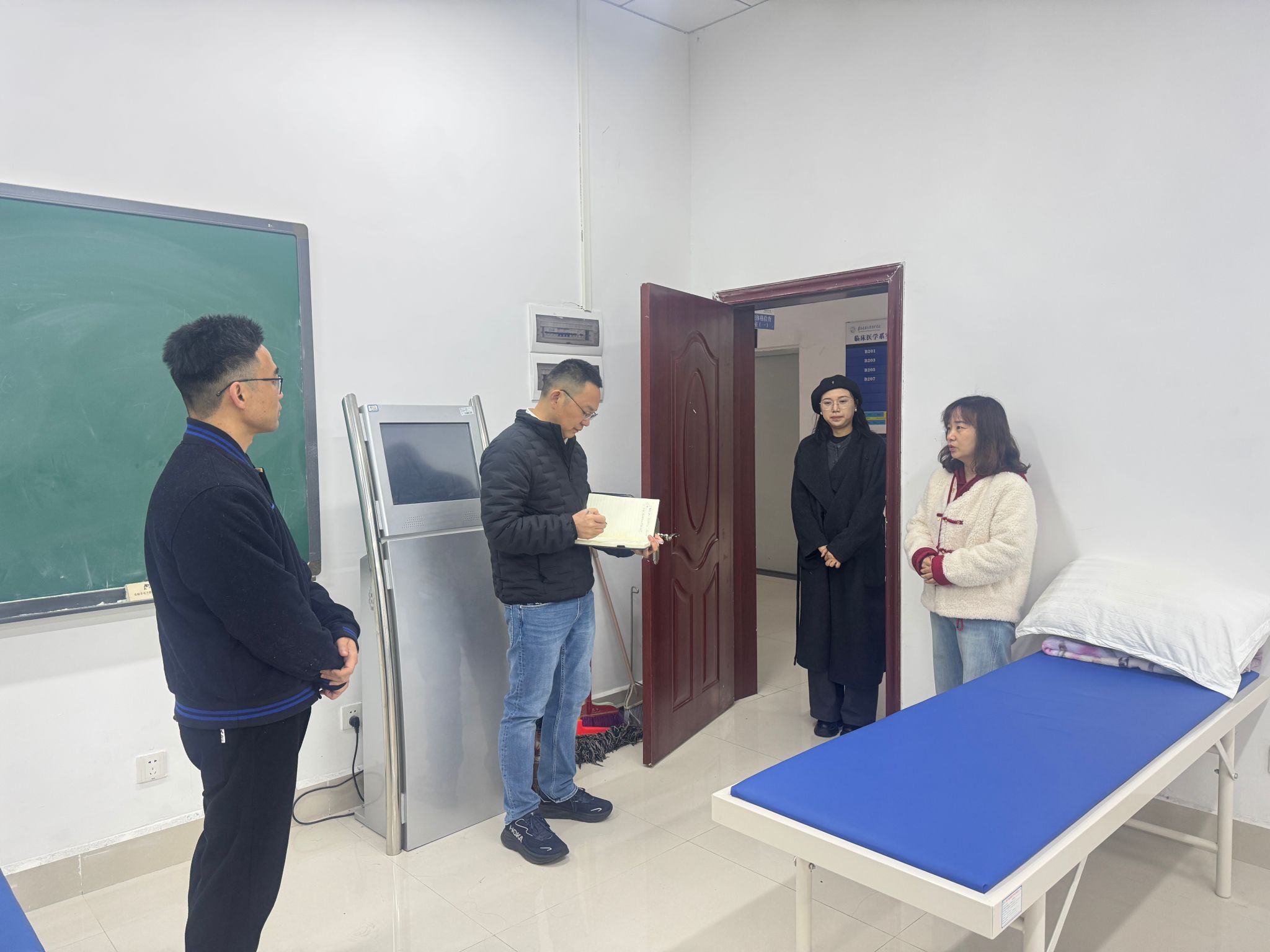 检查过程中,副校长黄波认真听取了各实训室负责人的汇报,对临床医学系设备维护、环境整理等准备工作给予肯定。他强调,实训教学是医学教育的关键环节,直接关系到人才培养质量,各实验室要进一步强化安全意识,完善管理机制,优化教学环境,为培养高素质医学人才提供坚实保障。